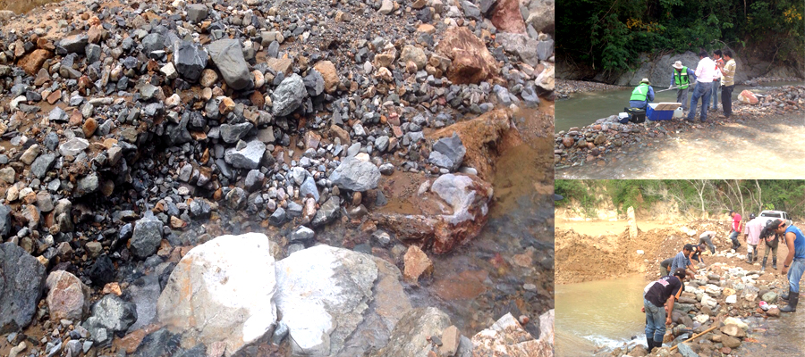 - La construcción de 18 bordes transversales a lo largo del arroyo Pánuco, donde se encuentran los jales derramados con la finalidad de retener y filtrar para darle clarificación al agua por sedimentación de los sólidos.